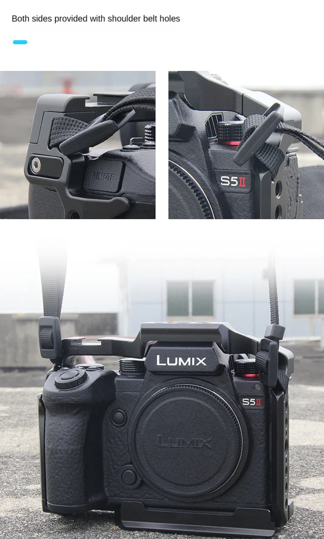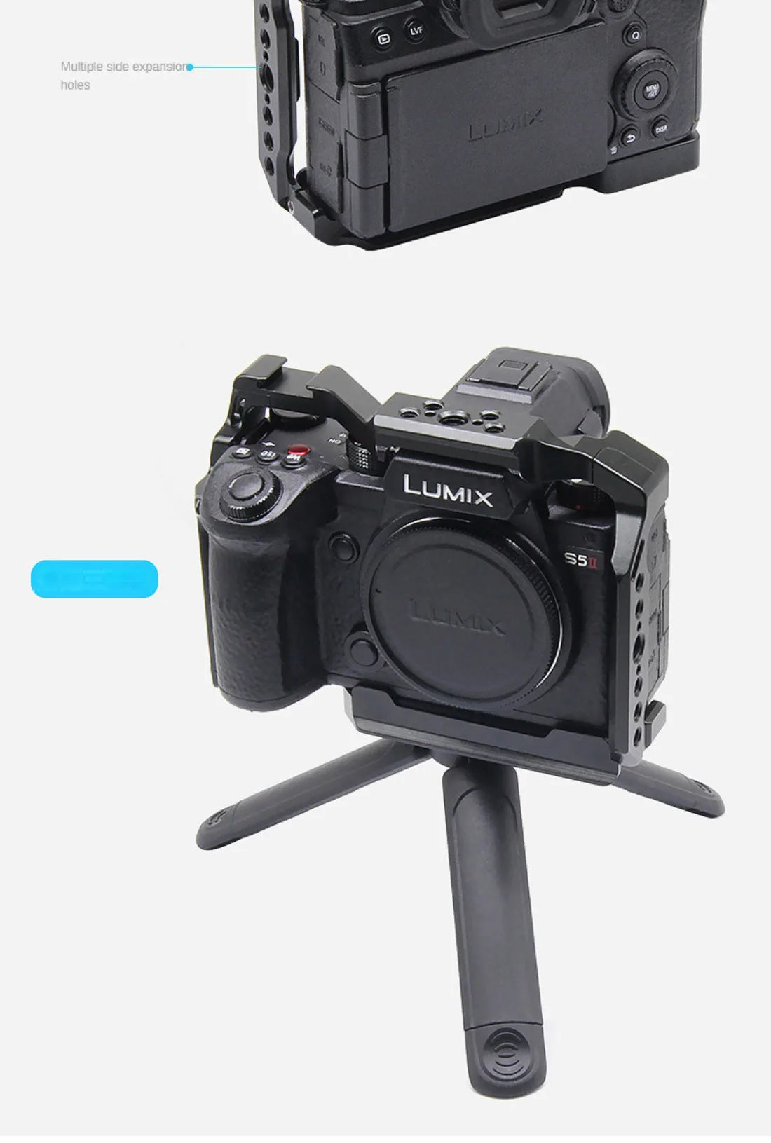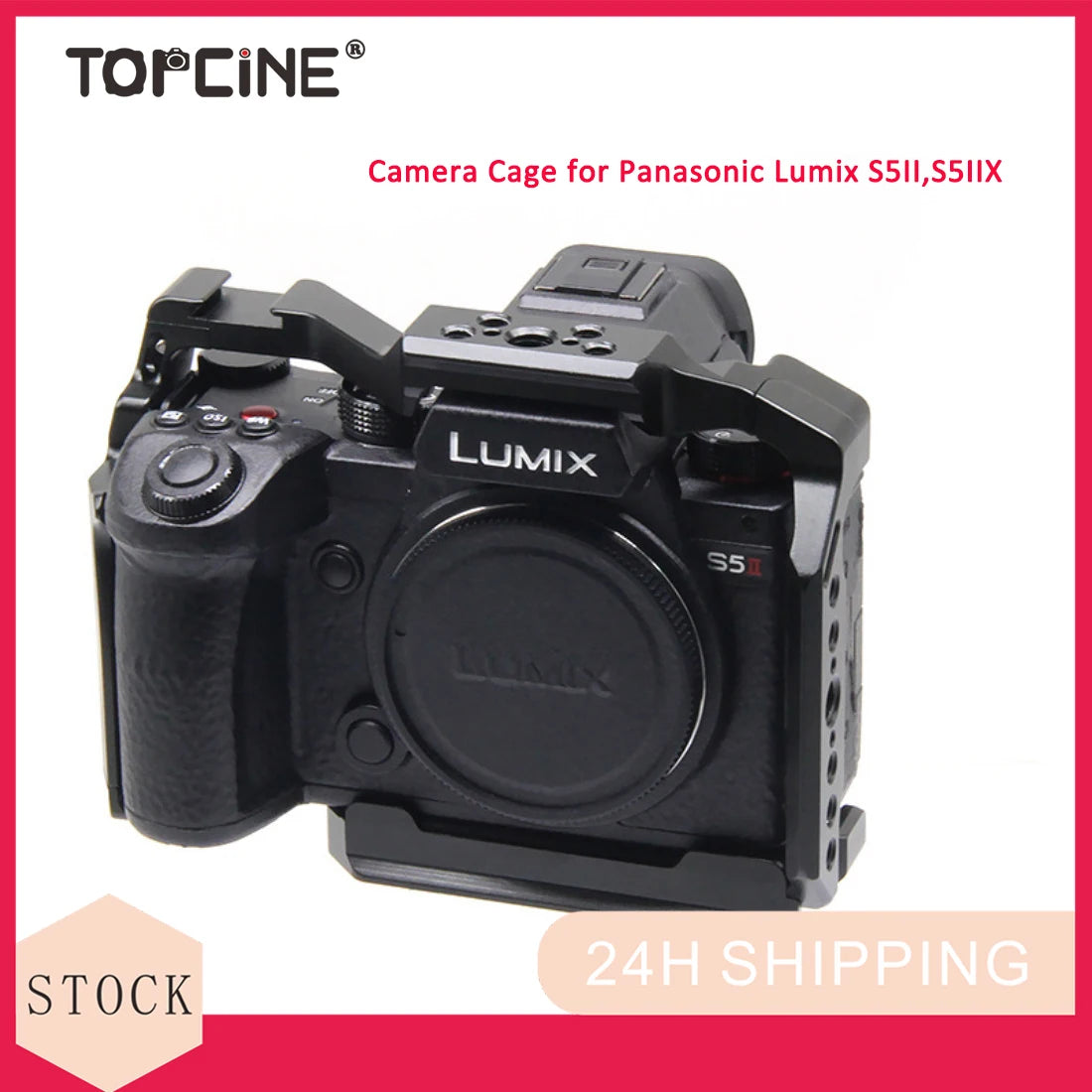 Topcine Camera Cage for Panasonic Lumix S5 II, S5 IIX, High-Quality DSLR Camera Cage with Multiple 1/4''-20 3/8''-16 Mounting Holes Cold Shoe Mount and Arri Locating Holes for Photography and Video Making